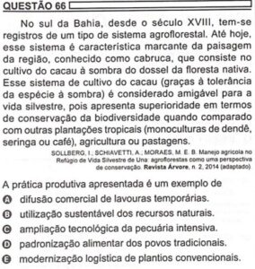 A questão do Enem justamente trouxe, não apenas a pesquisa, mas a própria cabruca ao âmbito nacional, pois versa sobre como esta é um exemplo de manejo sustentável dos recursos naturais.