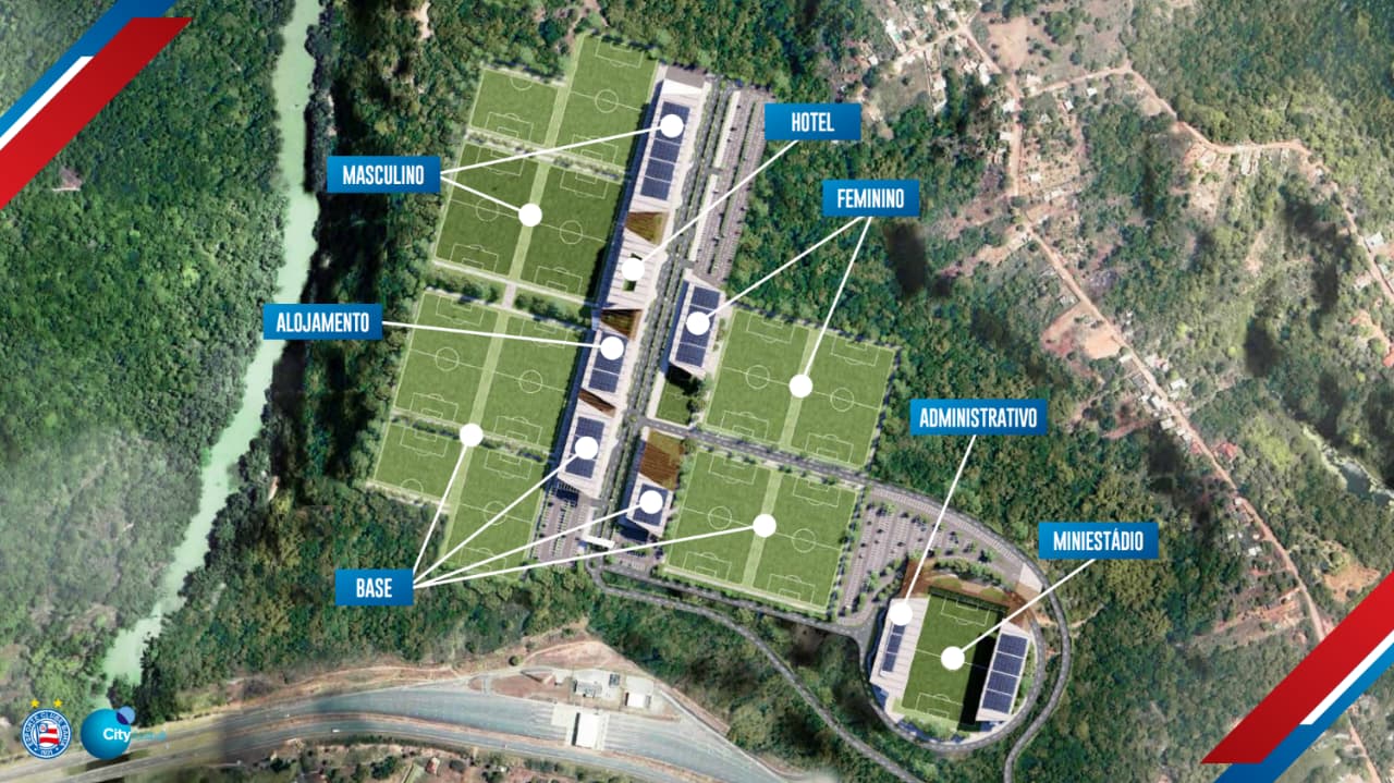 O CT terá área de 560 mil metros quadrados, com 12 campos de futebol e miniestádio com capacidade para 1000 espectadores. Chamado de CFA Bahia (City Football Academy Bahia), o complexo reunirá o futebol profissional masculino e feminino, além das categorias de base, hotel para jogadores profissionais, alojamento para atletas de base e a sede administrativa do Clube.