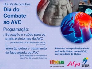 Em 29 de outubro, Dia Mundial de Combate ao Acidente Vascular Cerebral (AVC), a Prefeitura de Ilhéus, através da Secretaria de Saúde (Sesau), realiza um evento voltado para médicos, enfermeiros e agentes comunitários de saúde da rede municipal, em parceria com a Faculdade de ciências médicas AFYA Itabuna e Faculdade de Ilhéus.