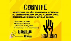 Na próxima quarta-feira (2), às 8h, a Prefeitura de Ilhéus, por meio da Secretaria Municipal de Desenvolvimento Social (SDS) realizará uma grande caminhada pela vida em alusão ao Setembro Amarelo, mês do enfrentamento contra o suicídio. A concentração será no estacionamento da Avenida 2 de Julho.
