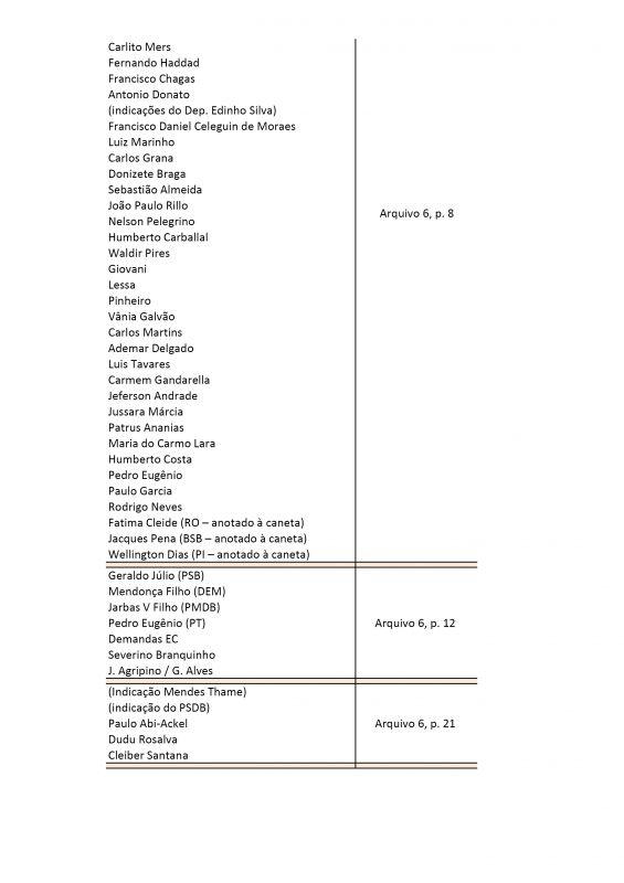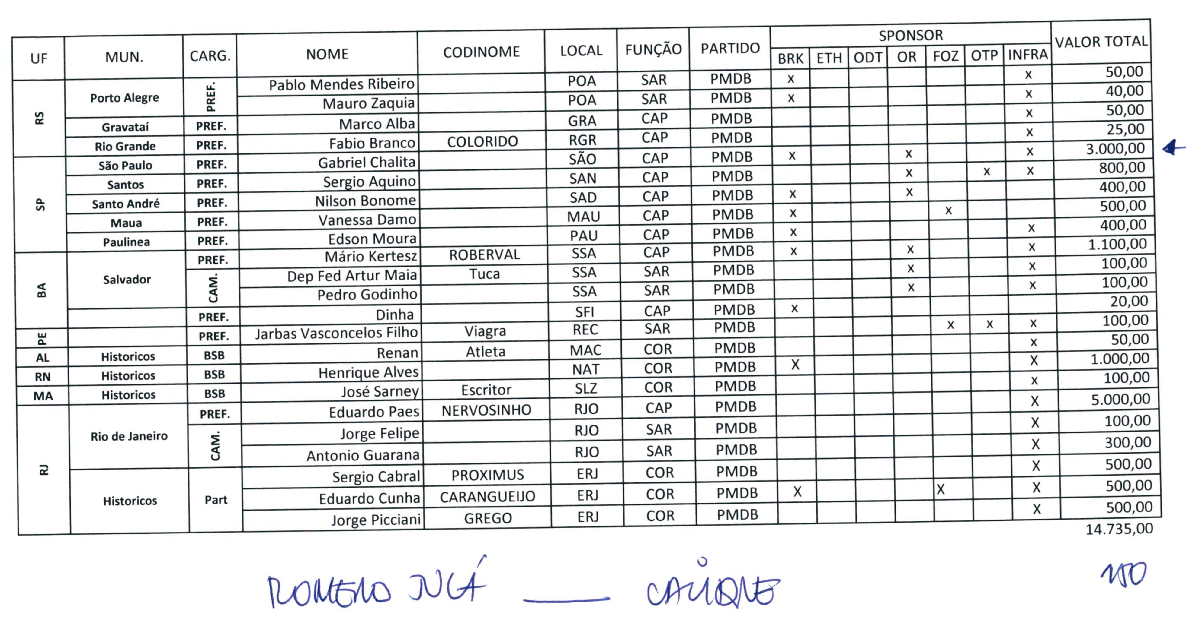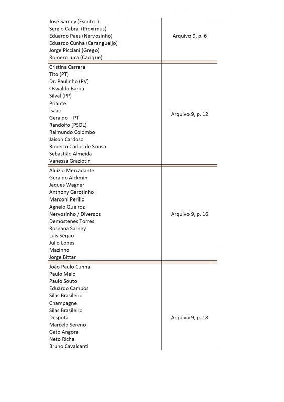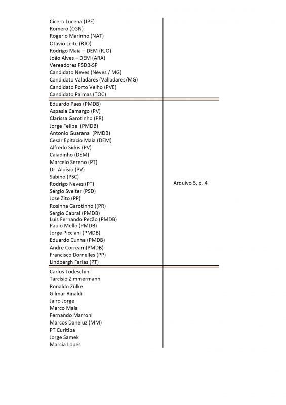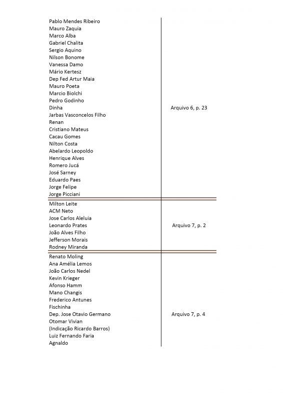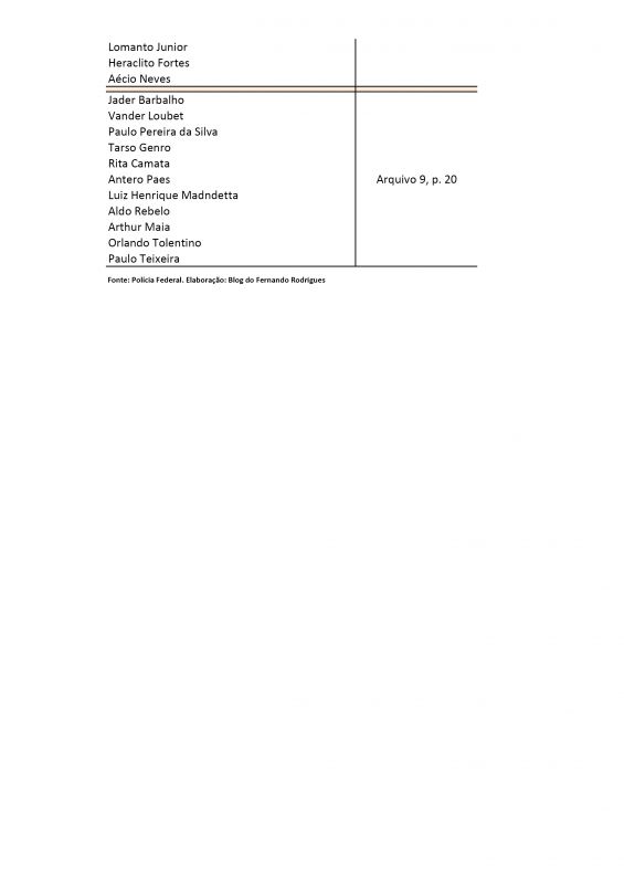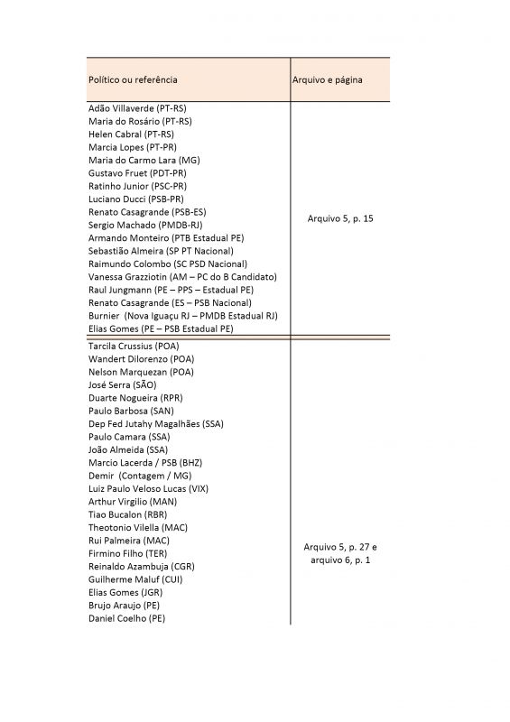 Entre os principais políticos citados estão Aécio Neves (PSDB), Eduardo Cunha (PMDB), Eduardo Paes (PMDB), Humberto Costa (PT), e José Serra (PSDB). Mário Kertesz, Arthur Maia e ACM Neto são alguns dos nomes que aparecem como beneficiados na Bahia. Veja: