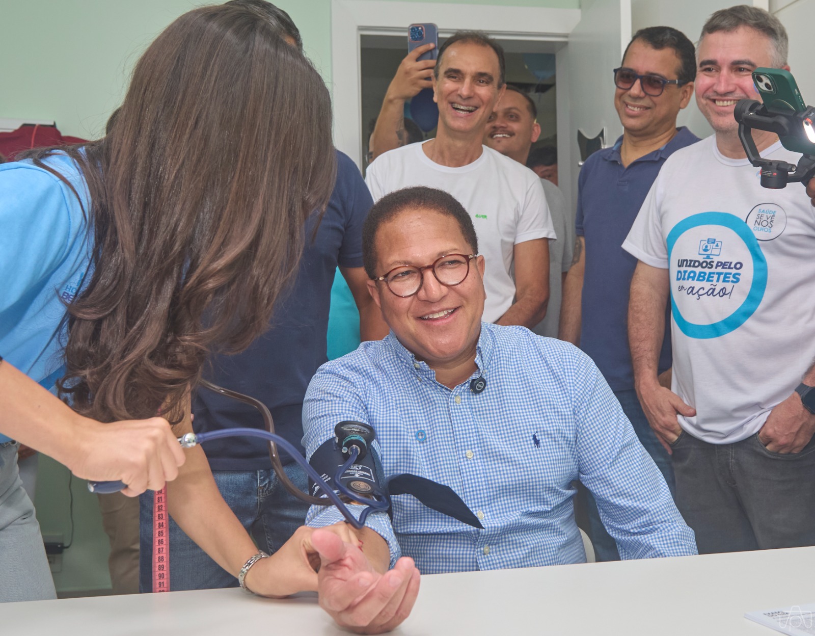 O prefeito de Itabuna, Augusto Castro (PSD), prestigiou a 21ª edição do Mutirão do Diabetes de Itabuna, neste último sábado, dia 15, com atendimento especializado no Hospital Beira Rio (HBR) e ações de prevenção na Cidade do Diabetes – Praça Rio Cachoeira. Acompanhado de secretários municipais, ele percorreu estandes e cumprimentou pacientes, médicos, enfermeiros e voluntários do evento que integra o calendário da Federação Internacional do Diabetes.