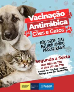 A Prefeitura de Itabuna, por meio da Diretoria do Controle de Zoonoses (DCZ), da Secretaria Municipal de Saúde, retomará as atividades e a vacinação antirrábica de rotina para cães e gatos