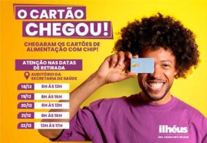 A Prefeitura de Ilhéus informa que o cartão do ticket alimentação com chip começou a ser entregue nesta segunda-feira (18) e segue até a sexta-feira (22), no auditório da Secretaria de Saúde (Sesau). Nesta segunda e quarta-feira, os cartões serão distribuídos das 8h às 12h. Na terça e quinta-feira, das 8h às 16h. Excepcionalmente na sexta-feira, a entrega acontece das 13h às 17h.