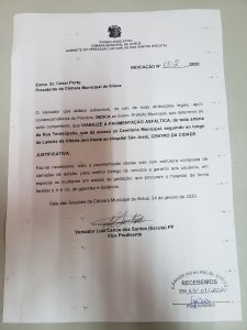 O vice-presidente da Câmara de vereadores de Ilhéus, Luiz Carlos Escuta, protocolou no legislativo na manhã desta sexta-feira, 24, projeto indicativo nº 002/2020, solicitando ao executivo municipal, pavimentação asfáltica de toda artéria da Rua Teresópolis, que dá acesso ao Cemitério Municipal, seguindo ao longo da Ladeira da Vitória (em frente ao Hospital São José), CENTRO DA CIDADE.